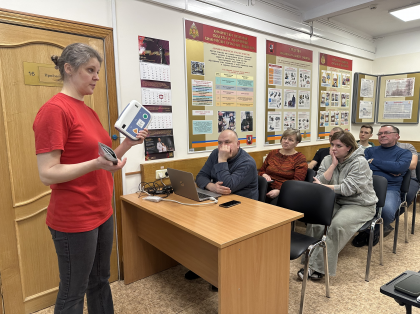 Преподаватель центра показала сотрудникам Управления, как использовать автоматический наружный дефибриллятор при проведении реанимационных мероприятий.