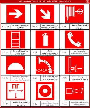 Особую группу среди знаков пожарной безопасности занимают указательные знаки для средств противопожарной защиты.