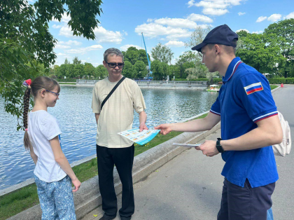 Во время патрулирования мест массового отдыха сотрудники Управления по Центральному округу Департамента по делам гражданской обороны, чрезвычайным ситуациям и пожарной безопасности города Москвы рассказывают отдыхающим о правилах безопасного поведения на водных объектах и приемам самоспасения на воде.