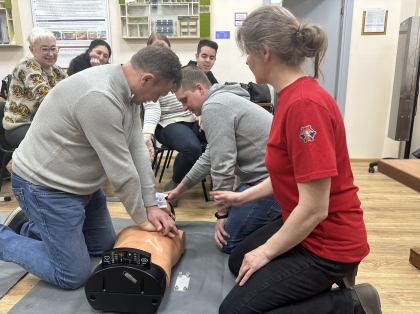 Для того, чтобы отработать соответствующие навыки, старшим преподавателем Центра Еленой Фоминой и преподавателем Центра Еленой Жуковой была смоделирована ситуация с раненым. Каждая команда потренировалась в проведении искусственной вентиляции легких условному пострадавшему, в наложении кровоостанавливающего жгута, шины, давящей повязки, повязки «чепец».