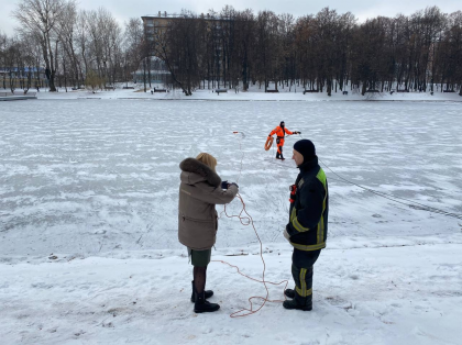 Вместе со спасателями пожарно-спасательного отряда №207 сотрудники Управления по ЦАО Департамента ГОЧСиПБ провели занятие «Тонкий лед» для работников Екатерининского парка.