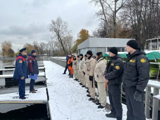 «Находясь на дежурстве, вы, скорее всего, первыми увидите того, кто пытается выйти на лед или провалился под лед. Если не получается пресечь такой выход, то нужно крикнуть пострадавшему, что идете ему на помощь, вызвать экстренные службы и приступить к спасению», – разъяснил собравшимся заместитель начальника ПСС «Крымский мост» Сергей Селиванов.