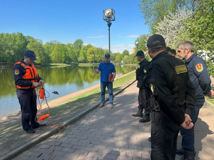 В преддверии купального сезона Управление Департамента ГОЧСиПБ по Центральному округу организовало занятие для работников Екатерининского парка с участием сотрудников аварийно-спасательного отряда № 1 Пожарно-спасательного центра г. Москва.