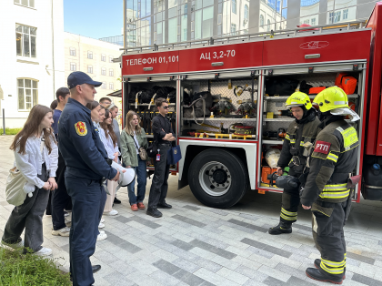 Сотрудники отряда продемонстрировали собравшимся оснащение пожарного автомобиля и аварийно-спасательные инструменты, рассказали об их назначении. Также студентам показали, как работать с огнетушителями и как обезопасить себя и окружающих в случае пожара. «Знакомство студентов с профессией огнеборца помогает им понять значимость пожарной службы для общества, получить важные знания, которые могут пригодиться в чрезвычайных ситуациях», – отметил заместитель начальника Управления Департамента ГОЧСиПБ по Центральному округу Евгений Алаев.