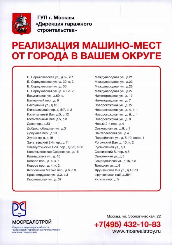 Адресный перечень объектов гаражного назначения, реализуемых отдельными машино-местами - скачать